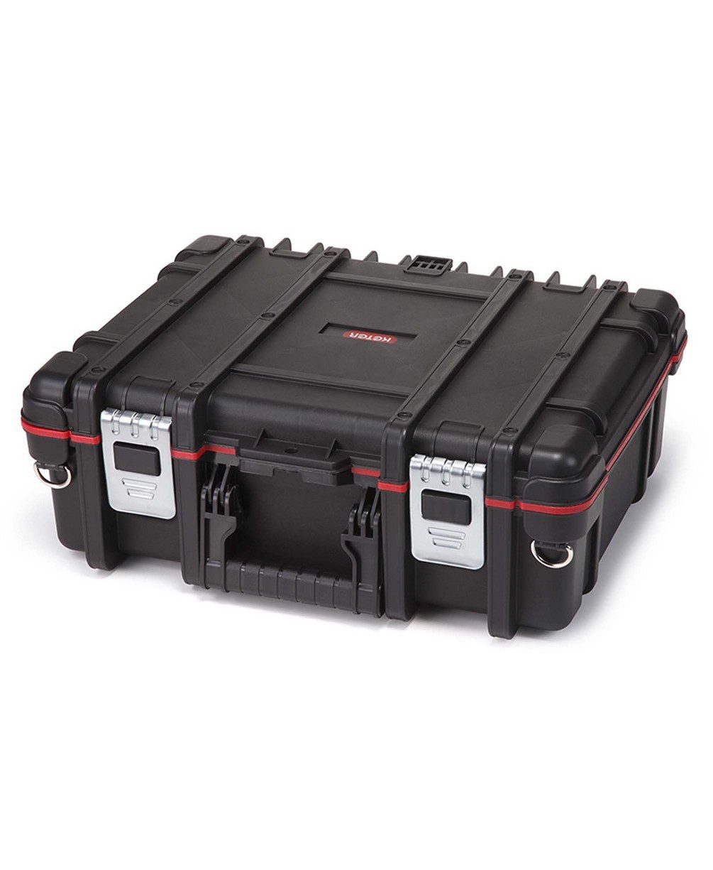 - Традиционная модель. Стандартный прямоугольный ящик, который может быть разных размеров, имеет откидную или съемную крышку и закрывается на замки. У некоторых разновидностей в крышки встроены выдвижные ящички для более мелкого инструмента или крепежа. Минус: габаритные модели плохо подходят для ручной транспортировки. Плюсы: хорошие герметичность и вместимость.