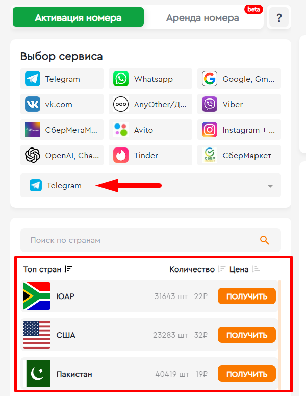 Процесс получения виртуального номера в Grizzly SMS прост и