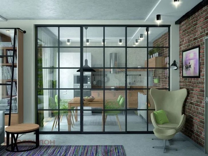 Стеклянные перегородки в интерьере будут уместны для разграничения пространства, а также отделения рабочих зон.