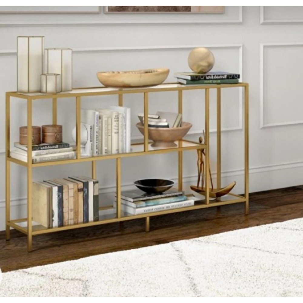 - Металл: Современный и стильный материал, который отлично подходит для интерьеров в стиле лофт, минимализм, хай-тек. Металлические консоли могут быть как массивными, так и легкими и ажурными.
