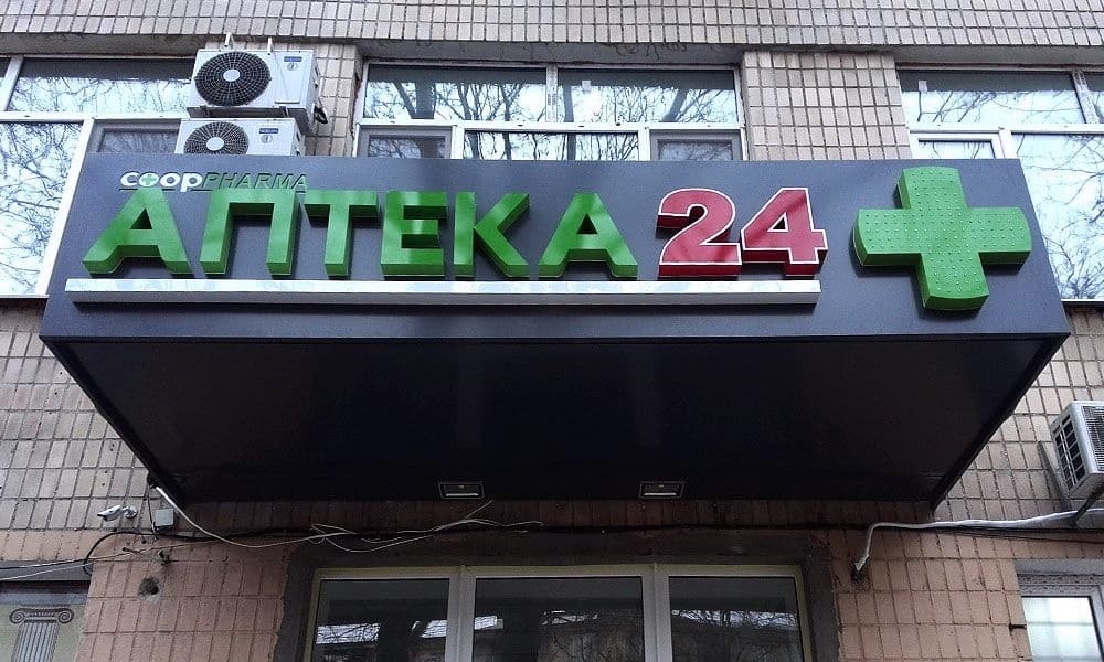 Если ваш аптечный пункт находится внутри торгового или делового центра, то снаружи здания обязательно должна быть вывеска, оповещающая население, что внутри есть аптека.
